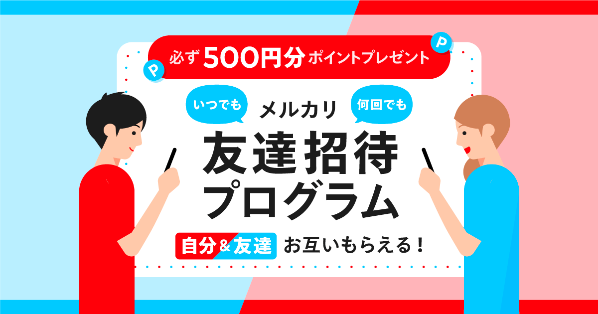 メルカリでは、新規登録時に招待コード(紹介コード)を入力するともれなく500ポイントが貰える友達紹介キャンペーンを実施しています。