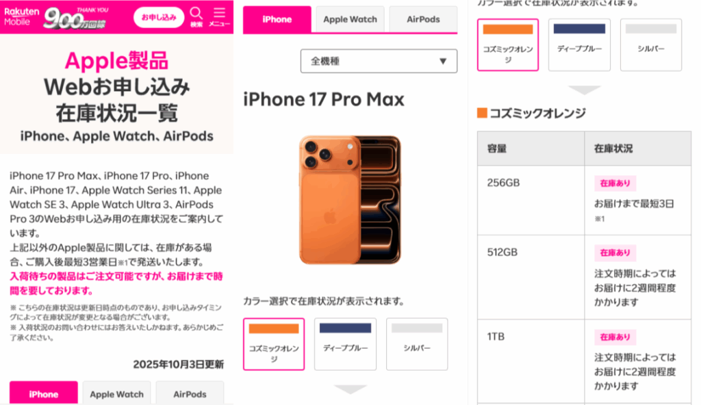 楽天モバイルのiPhone 17シリーズの最新在庫状況をリアルタイムで確認する方法