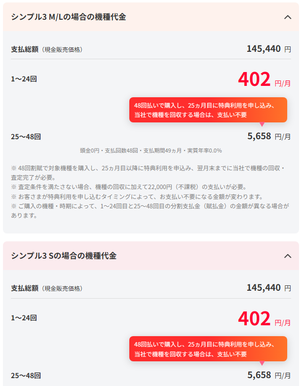 - ポイント! 最大還元をもらうために「シンプル3 M/L」を選ぶ